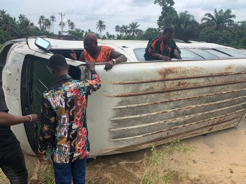 In an interview with TNN, Miss Ayomide Olawuyi, a member of the team who spoke on behalf of Wene Port Harcourt, explained that, “we are on our way to Bayelsa, around Ahoada axis, on our way going a trailer hit a bus and the bus somersaulted and scattered on the floor and stopped right at our back.